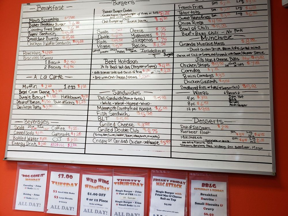 Discover the unique flavors of The Beaver Hut & Dam Growlers, a fast food joint in Corvallis, OR. Offering a range of comforting dishes, from Hot Wings to Munchiez Mess, this spot is a go-to for breakfast, brunch, lunch, dinner, and late-night cravings. The Beaver Breakfast Club boasts a Breakfast Burrito and Maws Scramble, while sandwich lovers can enjoy the Grilled Cheese or Double Club Sandwich. Customers rave about the delicious Breakfast Burrito and affordable menu prices. Experience the welcoming vibe and tasty food at this college-town gem, perfect for a quick bite or hangover cure. With great service and options for outdoor seating, The Beaver Hut & Dam Growlers is a must-visit for locals and travelers alike.